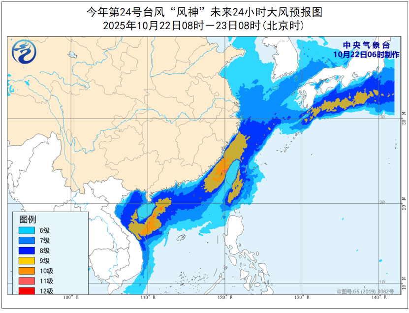 “风神”继续向西南方向移动。今年第24号台风“风神”昨天(10月21日)晚上加强为台风级,今天(10月22日)早晨8点钟其中心位于海南省三沙市(西沙永兴岛)西偏北方向大约155公里的海面上,中心附近最大风力有12级(33米/秒)。预计,“风神”将继续向西南方向移动,今天早晨至上午强度维持,而后逐渐减弱,并将于10月23日白天以热带风暴级(18~23米/秒,8~9级)在越南中部沿海登陆,登陆后强度快速减弱。